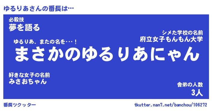 | 伝説のあだ名 | 『伝説のスナイパーゆるりあ』 |