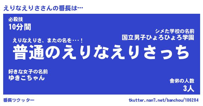 | 欧米人風あだ名 | 『マイケルえりなえりさ』 |