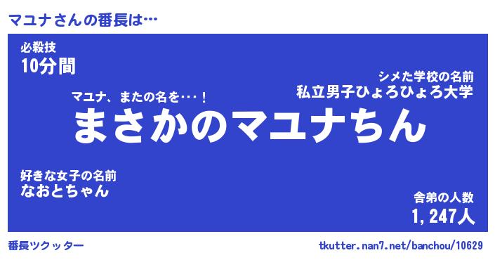 | 意味不明あだ名 | 『ペロリンマユナ』『マユナフォーエバー』 |