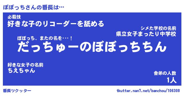 | 提督の名前『ぼぼっちっち提督』嫁『龍田』 |