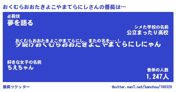 | 伝説のあだ名 | 『封印されし竜騎士おくむらおおたきよこやまてらにし』 |