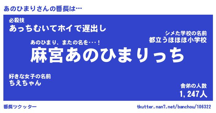 | ファンタジー風あだ名 | 『アノフェル』『エターナルアノヒマリー』 |