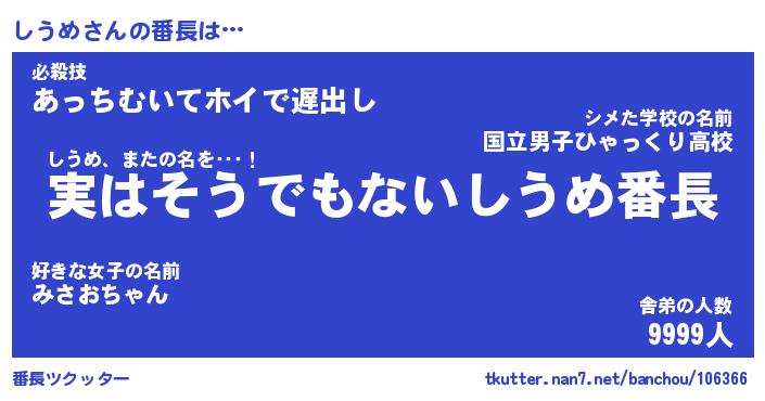 | 伝説のあだ名 | 『封印されしスナイパーしうめ』 |