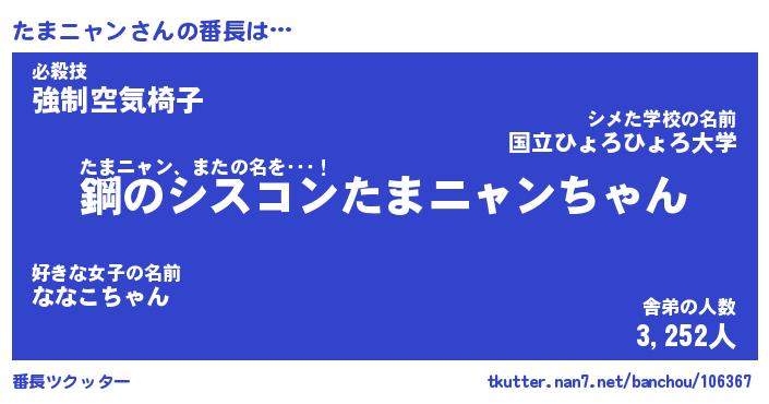 | 肩書あだ名 | 『たまニャン店長』『たまニャン総理大臣』 |