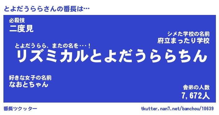 | ヒーロー風カッコイイあだ名 | 『スーパートヨダウララ』『炎刃騎士トヨ』 |