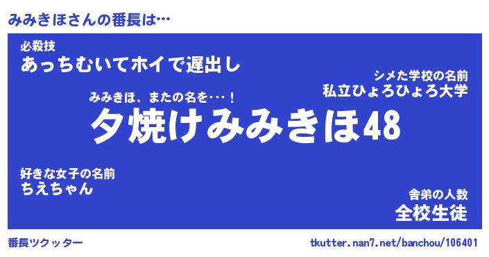 | 欧米人風あだ名 | 『マイケルみみきほ』『ウサインみみきほ』 |