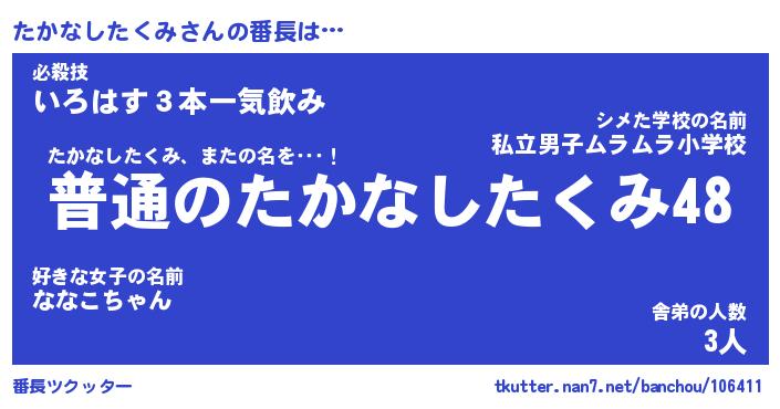| 2回繰り返すあだ名 | 『たかたか』『たたかか』『ぶりぶり』 |