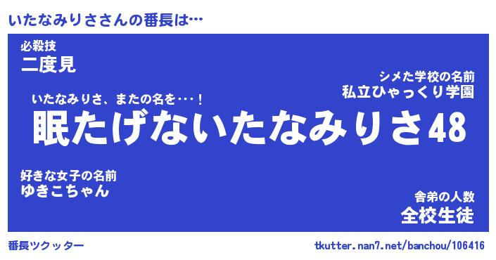 | 伝説のあだ名 | 『封印されしスナイパーいたなみりさ』 |