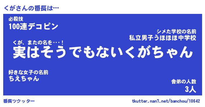 | ヒーロー風カッコイイあだ名 | 『スーパークガ』『ウルトラくがマン』 |