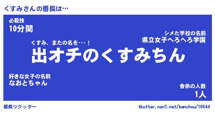 | 伝説のあだ名 | 『伝説のスナイパーくすみ』 |