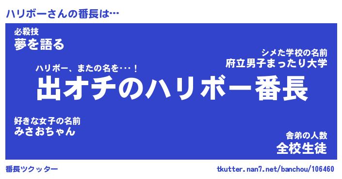 | 意味不明あだ名 | 『ペロリンハリボー』『永久保存ハリボー』 |