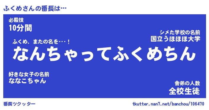 | ヒーロー風カッコイイあだ名 | 『スーパーフクメ』『ウルトラふくめマン』 |