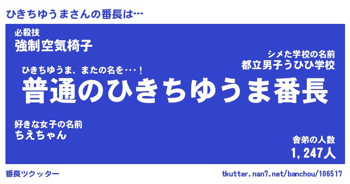 | 欧米人風あだ名 | 『マイケルひきちゆうま』 |