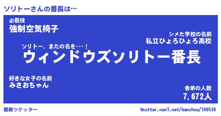 | 意味不明あだ名 | 『ペロリンソリトー』『永久保存ソリトー』 |