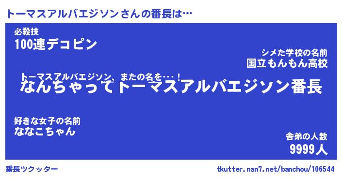 | 伝説のあだ名 | 『伝説の竜騎士トーマスアルバエジソン』 |