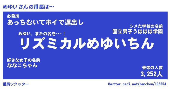 | 伝説のあだ名 | 『伝説のスナイパーめゆい』 |