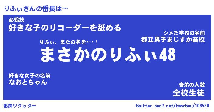 | 肩書あだ名 | 『りふぃ御曹司』『りふぃ国家主席』 |