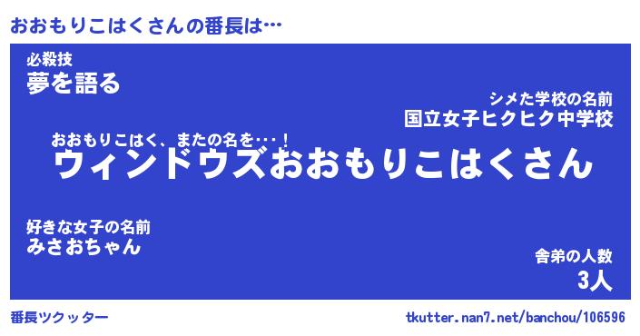 | 伝説のあだ名 | 『伝説のスナイパーおおもりこはく』 |