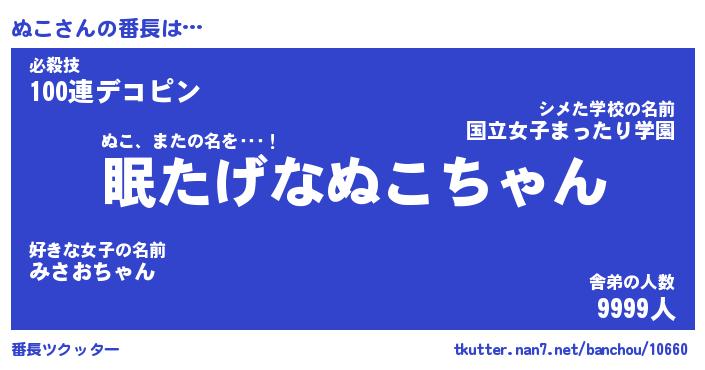 | ピコ太郎風あだ名 | 『ヌコ八郎』『ピヌ次郎』『ヌコ五郎』 |