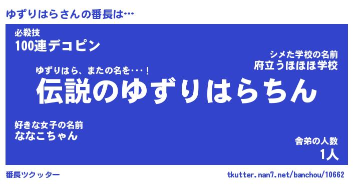 | ヘコむあだ名 | 『ゆずにー』『つくし』『ゆずっぺ』 |