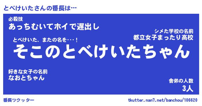 | 男性向けラノベタイトル風あだ名 | 『とべけいたの憂鬱』 |