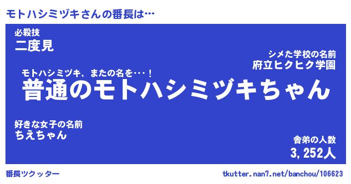| 意味不明あだ名 | 『ペロリンモトハシミヅキ』 |