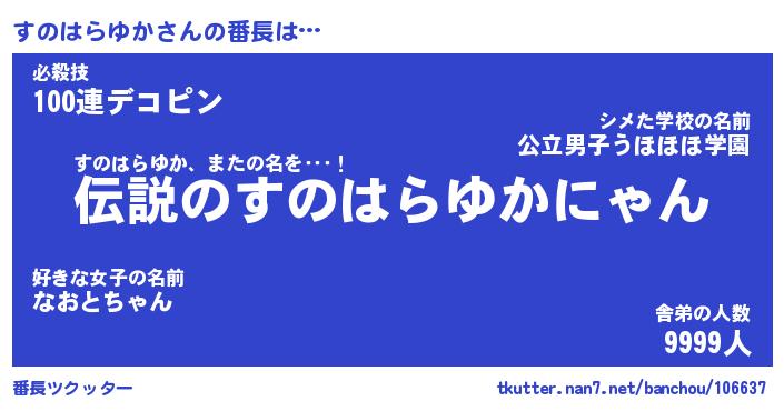 | 男性向けラノベタイトル風あだ名 | 『すのはらゆかの憂鬱』 |