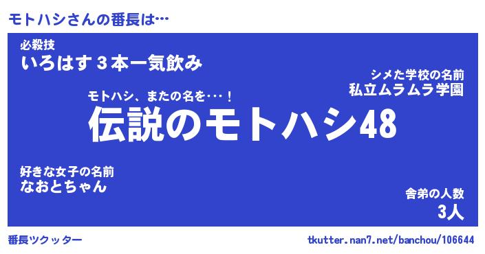 | 肩書あだ名 | 『モトハシ店長』『モトハシ大統領』 |