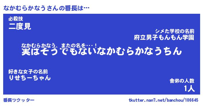 | 伝説のあだ名 | 『封印されしスナイパーなかむらかなう』 |