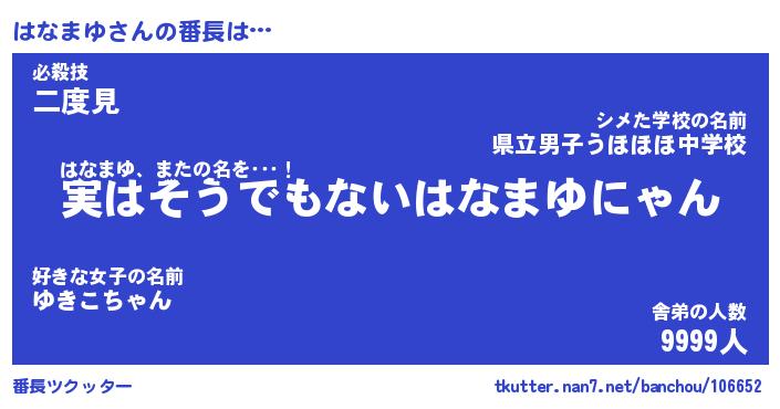 | 伝説のあだ名 | 『封印されしスナイパーはなまゆ』 |