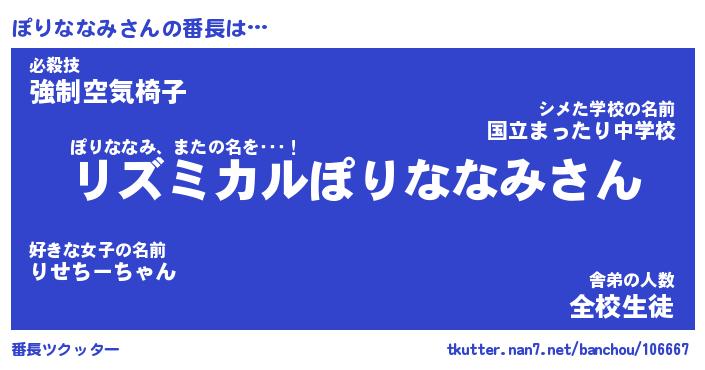 | 肩書あだ名 | 『ぽりななみ店長』『ぽりななみ国家主席』 |