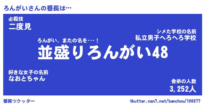 | 意味不明あだ名 | 『ペロリンろんがい』『永久保存ろんがい』 |