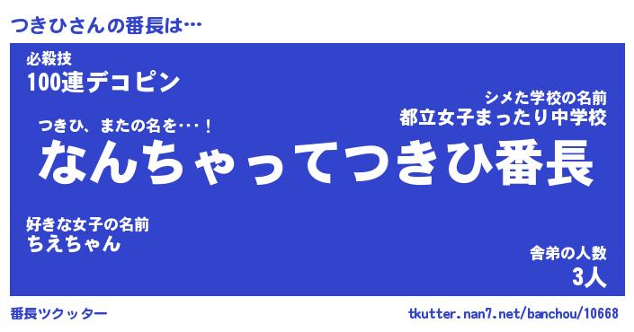 | 伝説のあだ名 | 『伝説のスナイパーつきひ』 |