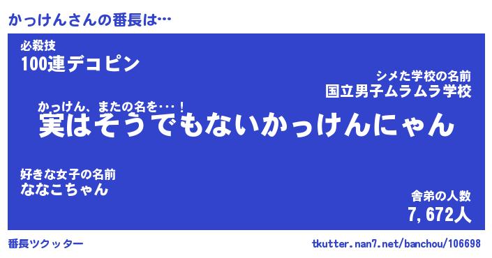 | ヒーロー風カッコイイあだ名 | 『スーパーカッケン』『魔戒騎士カッ』 |