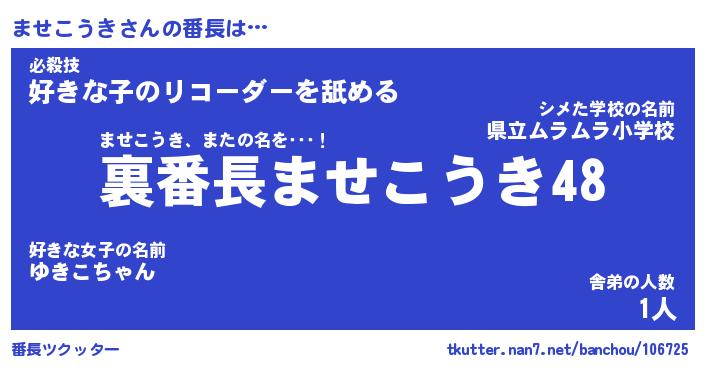 | ヘコむあだ名 | 『ませっふぃ~』『つくし』『ませお』 |
