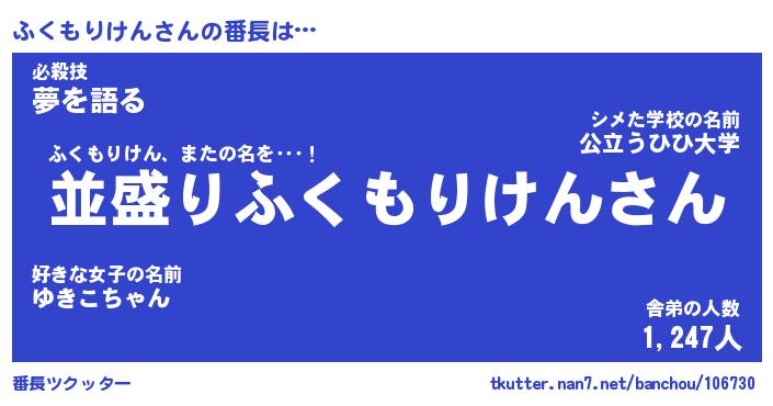 | 肩書あだ名 | 『ふくもりけん社長』『ふくもりけん団長』 |