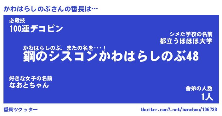 | 意味不明あだ名 | 『ペロリンかわはらしのぶ』 |