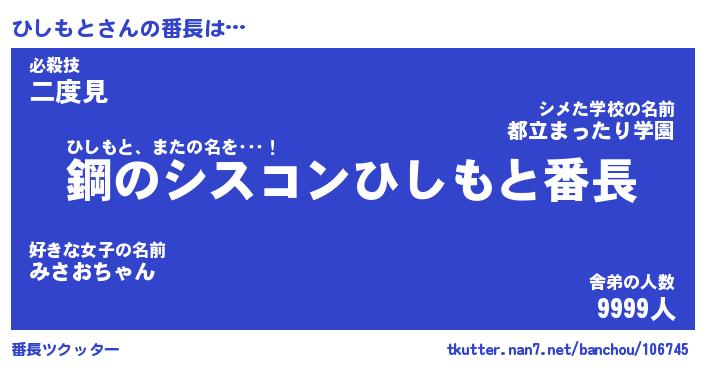 | 伝説のあだ名 | 『封印されしスナイパーひしもと』 |