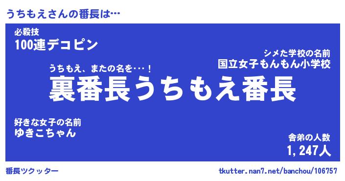 | ポケモン風あだ名 | 『ウチチュウ』『ウチモダネ』 |