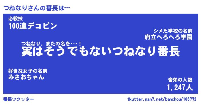| ポケモン風あだ名 | 『ツネチュウ』『ツネナダネ』 |