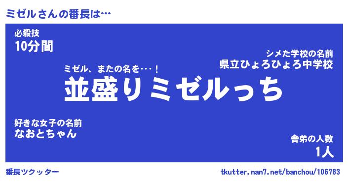 | ヒーロー風カッコイイあだ名 | 『スーパーミゼル』『ウルトラミゼルマン』 |