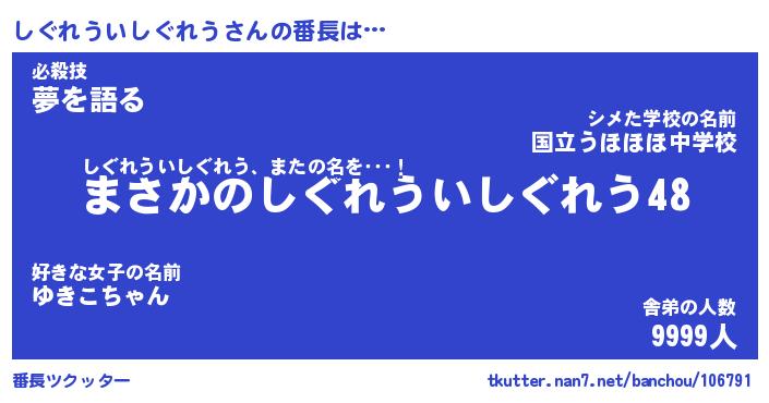 | 胡散臭い通販商品みたいなあだ名 | 『必ず成功するブレスレット…その名も「しぐれういしぐれう」』 |