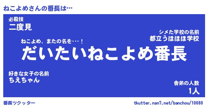 | 2回繰り返すあだ名 | 『ねこねこ』『ねねここ』『ねちねち』 |