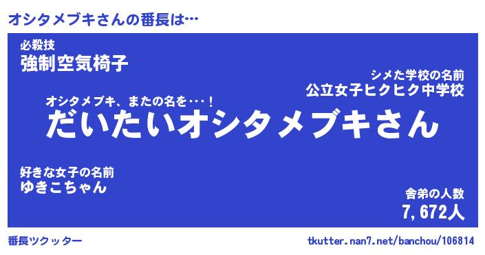 | 伝説のあだ名 | 『不死鳥のスナイパーオシタメブキ』 |