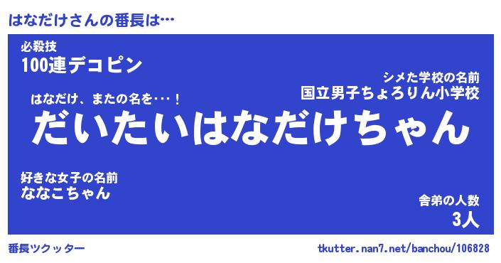 | 意味不明あだ名 | 『ペロリンはなだけ』『永久保存はなだけ』 |