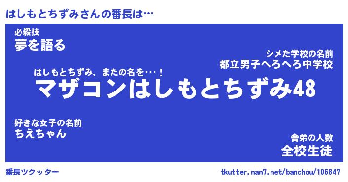 | 肩書あだ名 | 『はしもとちずみ御曹司』 |