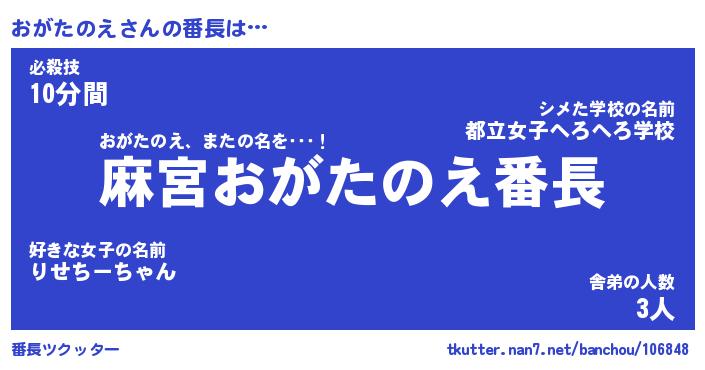 | 2回繰り返すあだ名 | 『おがおが』『おおがが』『おろおろ』 |