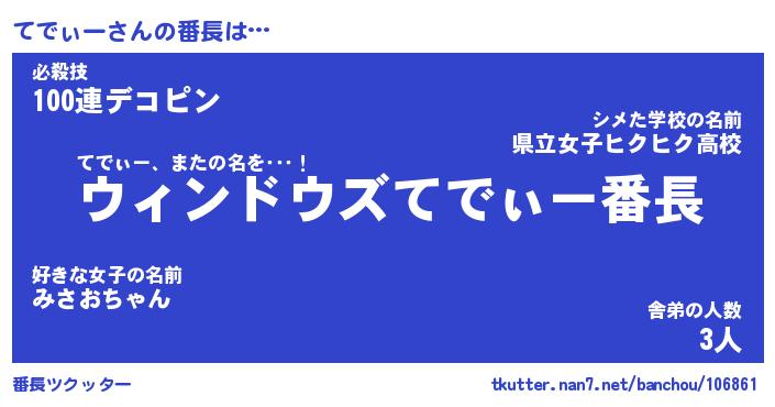 | ヘコむあだ名 | 『てでもー』『つくし』『てで太郎』 |