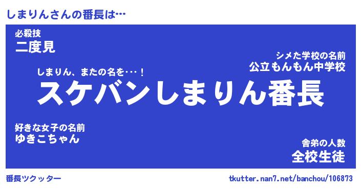 | ファンタジー風あだ名 | 『シマフェル』『エターナルシマリンー』 |