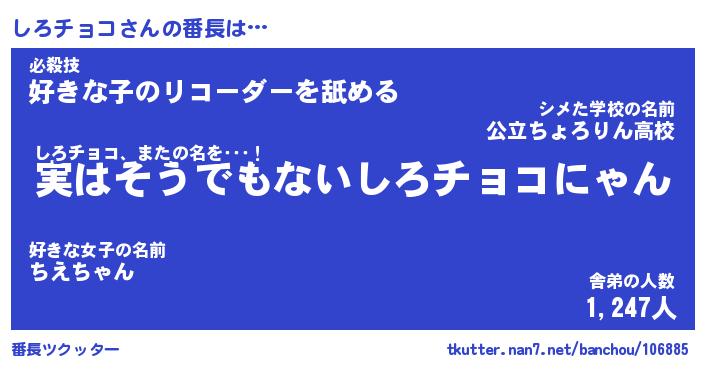 | 肩書あだ名 | 『しろチョコ社長』『しろチョコ大統領』 |